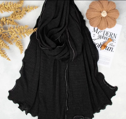شال مشکی زنانه پلیسه دور نخ نقره ای