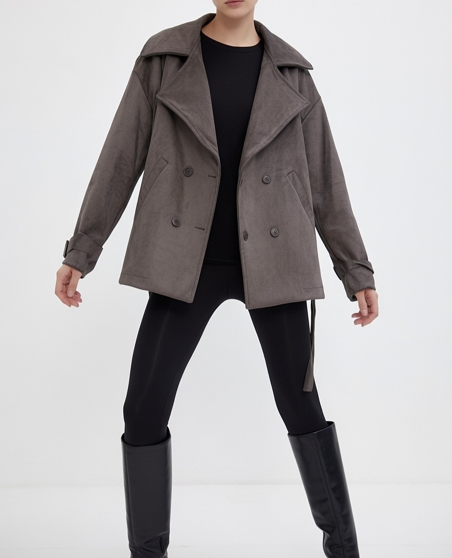 کتهای جیر همواره نمادی از استایل "اسمارت کژوال" و شیکپوشی در فصول سرد سال هستند. کت زنانه جیر مدل ۴ دکمه، با بهرهگیری از بافت مات و مخملی پارچه جیر (Suede)، حسی از لوکس بودن را به ظاهر شما میبخشد. طراحی ۴ دکمه این کت، علاوه بر زیبایی، به حفظ فرم متناسب بدن کمک کرده و باعث میشود کت ایستایی محکم و کتیتری داشته باشد.
