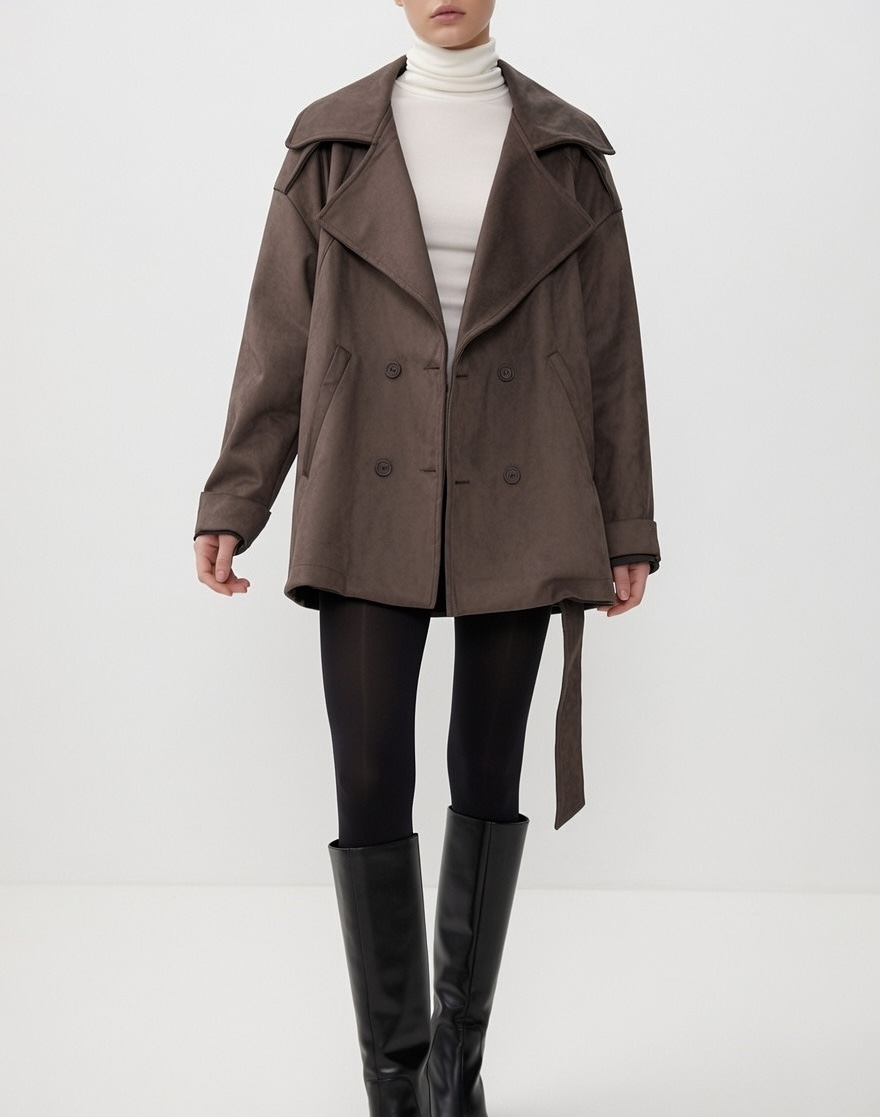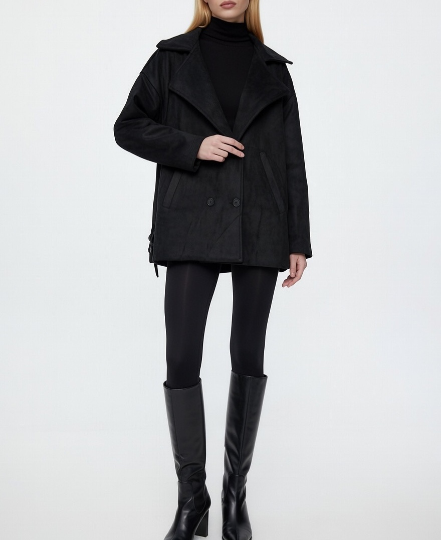استایل شیک و رسمی: این کت را با یک شلوار پارچهای همرنگ یا مشکی و بوتهای چرم ست کنید.