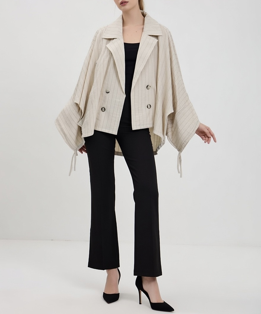 کت زنانه راه راه آستین کیمونوفانتزی
