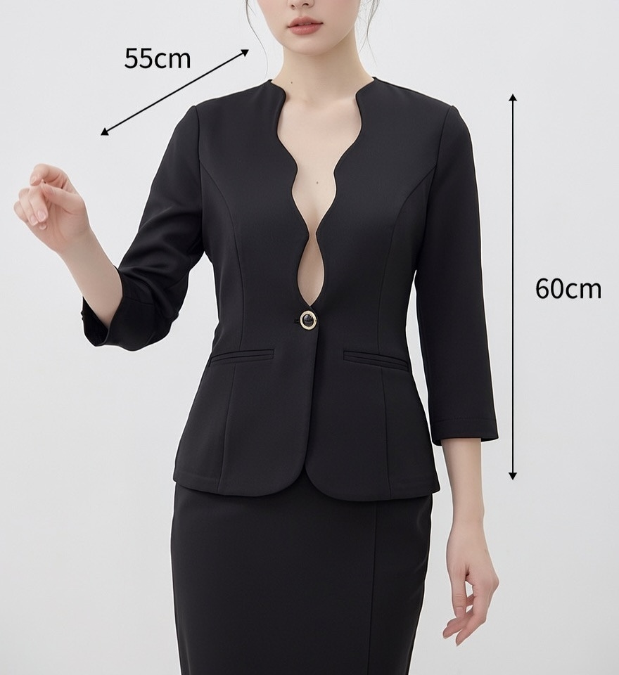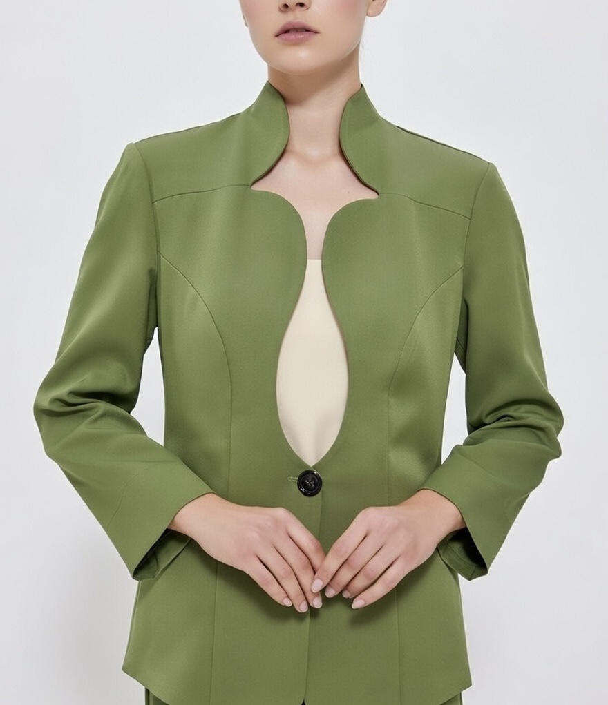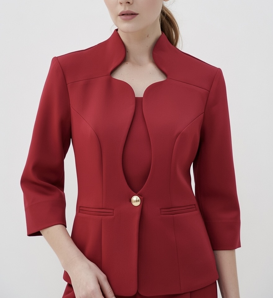 تطبیقپذیری بالا: این کت به راحتی با شلوارهای راسته پارچهای برای استایل رسمی و یا دامنهای میدی برای استایل مجلسی ست میشود.