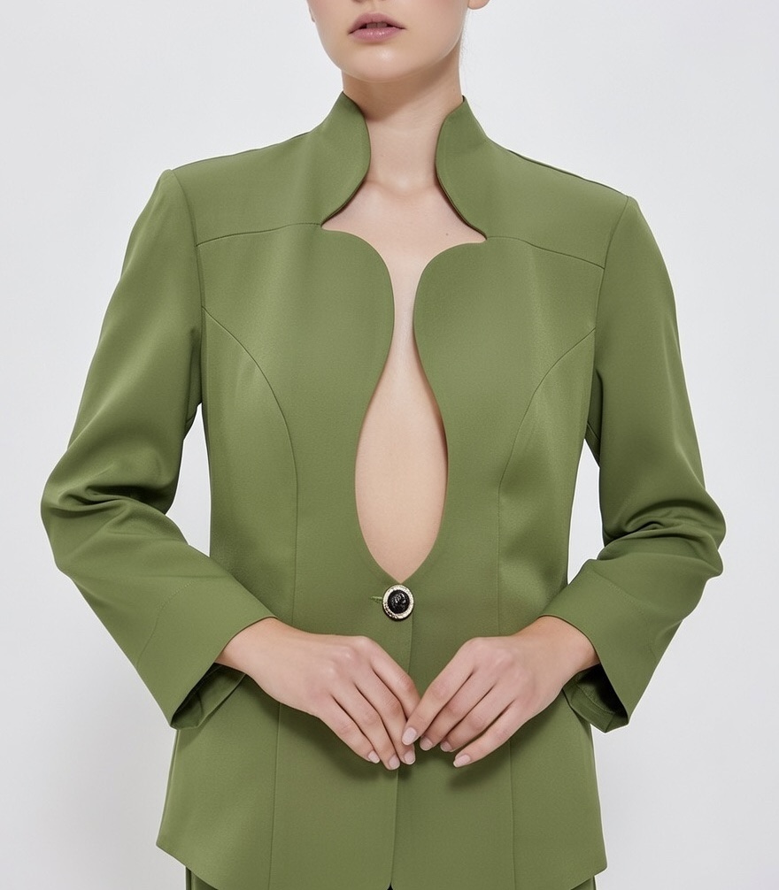 طراحی خاص یقه: دالبرهای دقیق و قرینه در قسمت یقه، این کت را به یک آیتم "خاص" تبدیل کرده که نیاز به اکسسوریهای شلوغ را از بین میبرد.