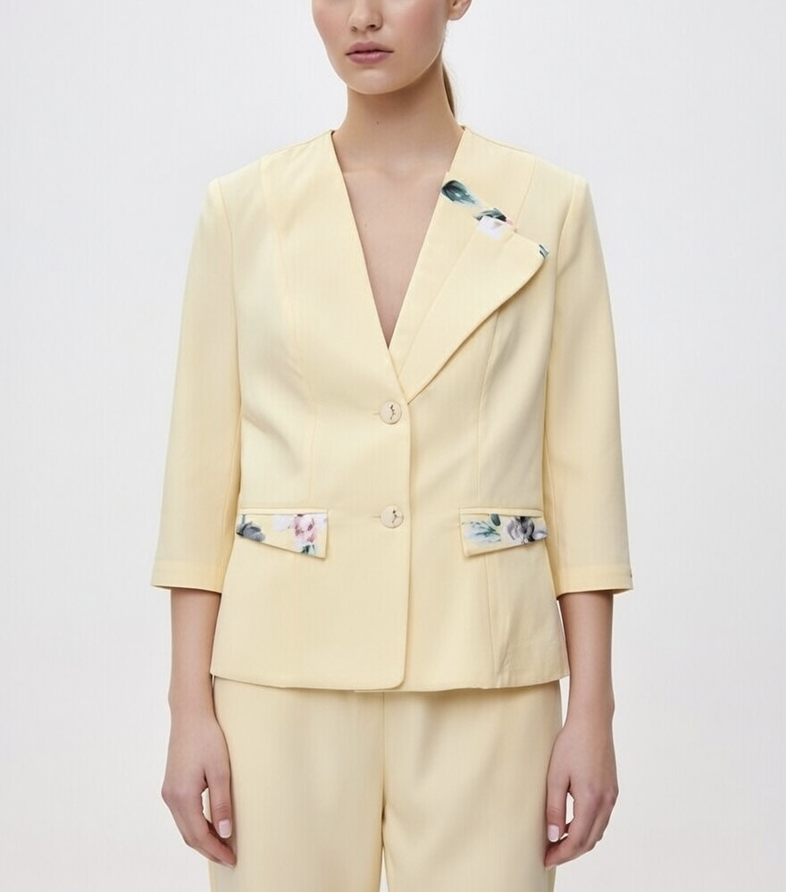 پارچه کرپ باکیفیت: استفاده از پارچه کرپ (مانند کرپ باربی یا مازراتی سنگین) باعث شده تا کت ریزش و ایستایی عالی داشته باشد و یقه حجیم آن بهدرستی روی بدن قرار بگیرد.