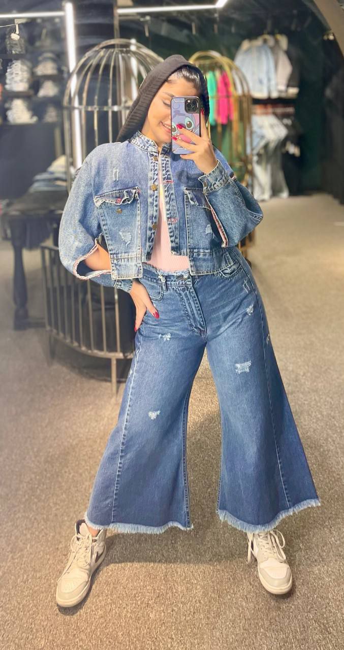 شلوار زنانه جین شافل بگ قد۹۰
